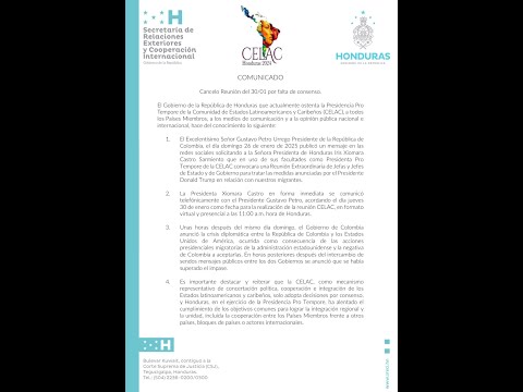 La Comunidad de Estados Latinoamericanos y Caribeños (Celac) canceló la reunión extraordinaria sobre migración que solicitó Gustavo Petro en medio de crisis con EU, y que se iba a celebrar este jueves en Tegucigalpa, Honduras…